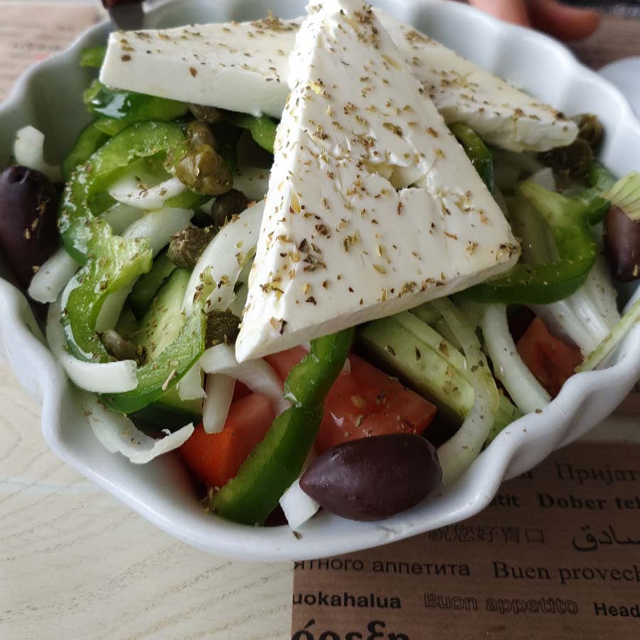 ντομάτα, αγγούρι κρεμμύδι, κάπαρη, ελιές φέτα